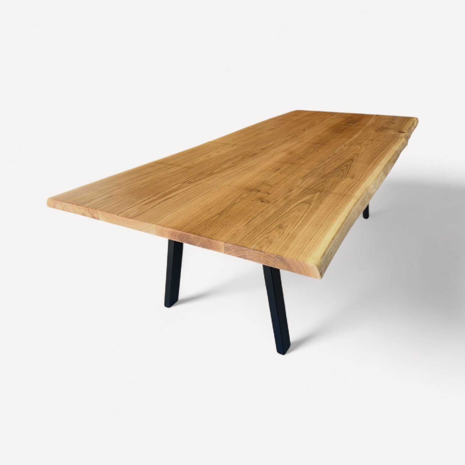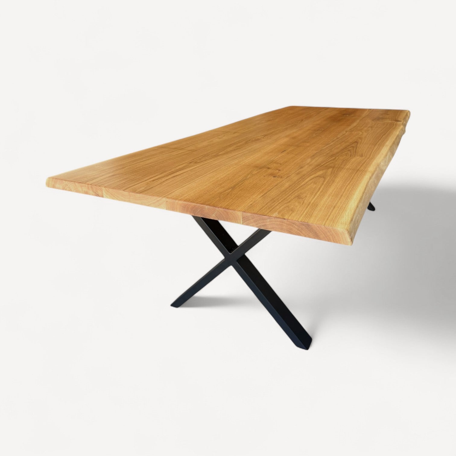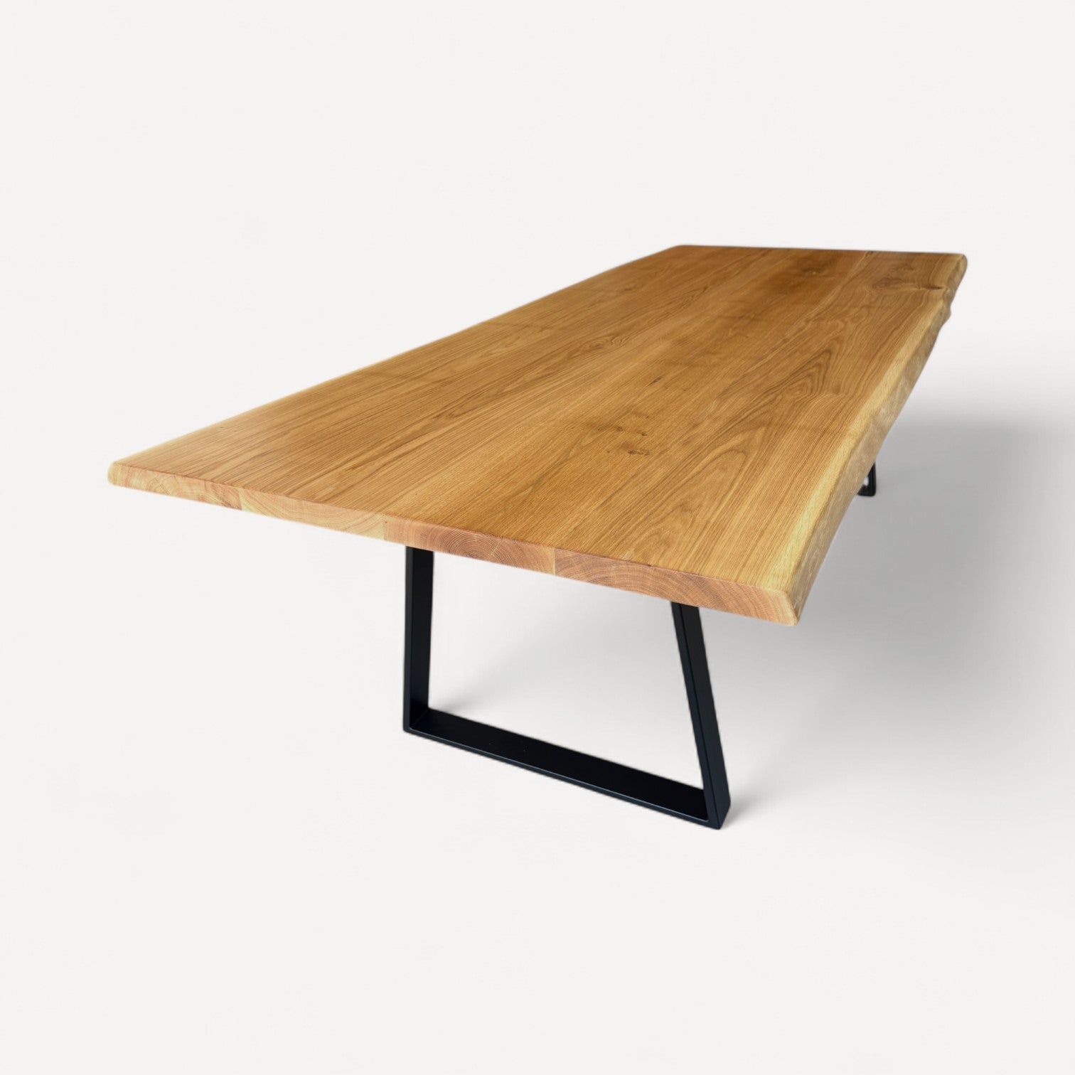 Du vælger frit den ønskede nuance af egetræ til bordpladen – uden ekstra omkostninger. Det giver dig mulighed for at tilpasse bordet præcis til din boligindretning og personlige stil.