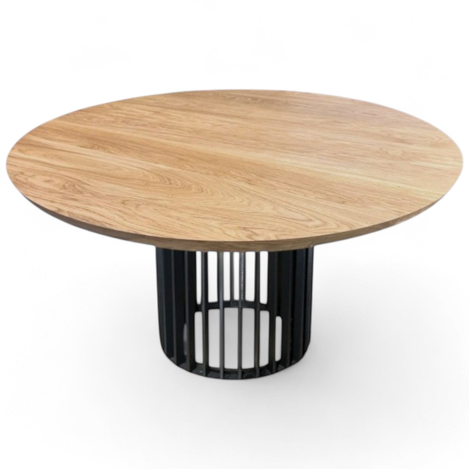 Rundt Plankebord i Massivt Egetræ – 4 cm Tykkelse med Metal Sokkelfod