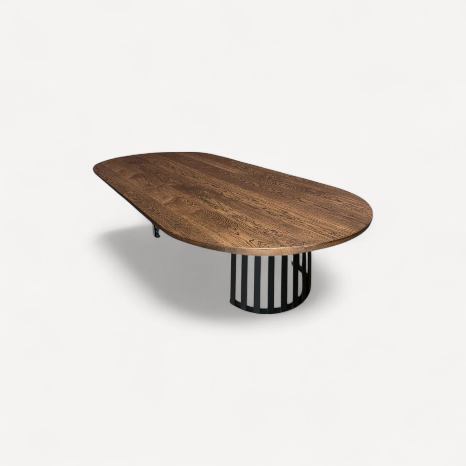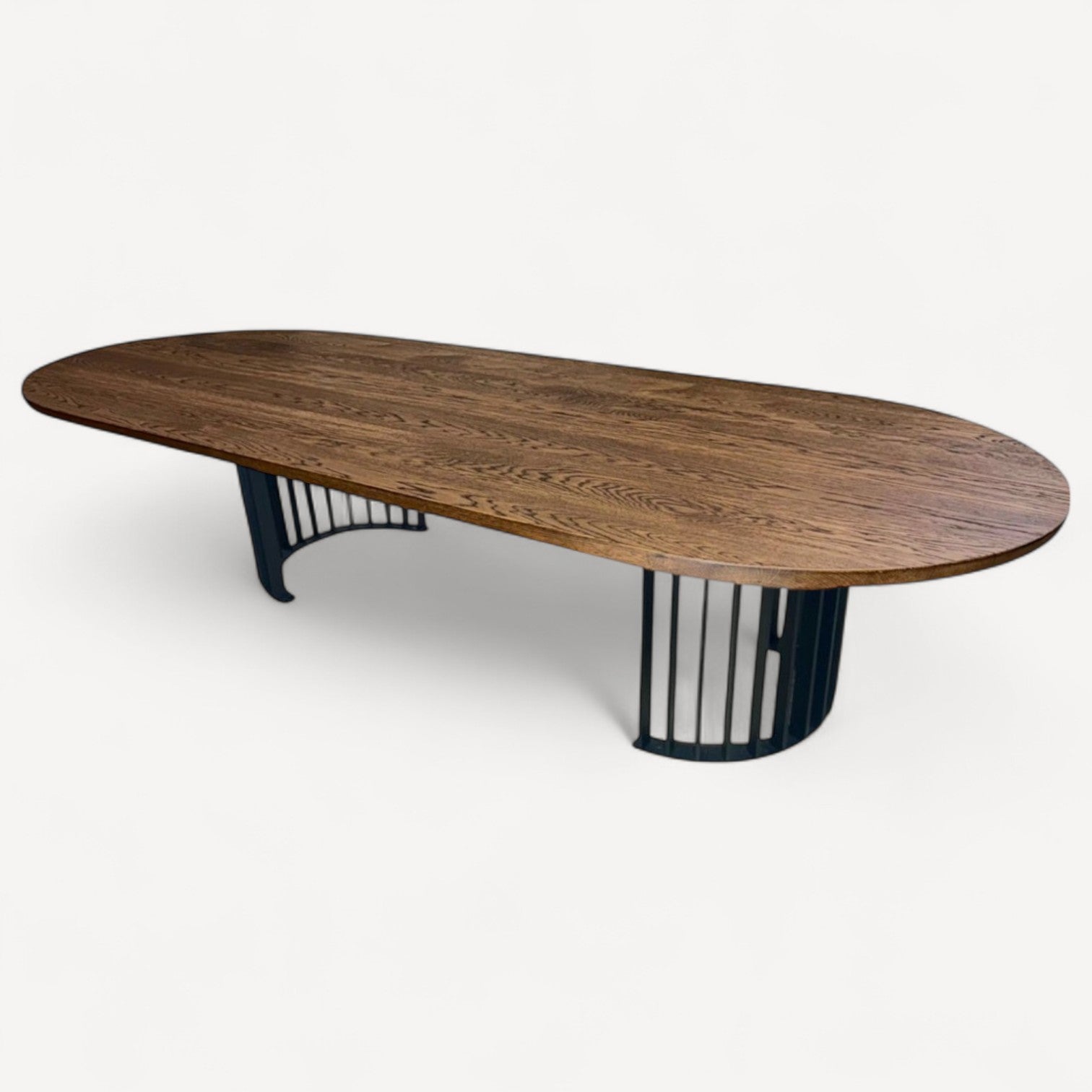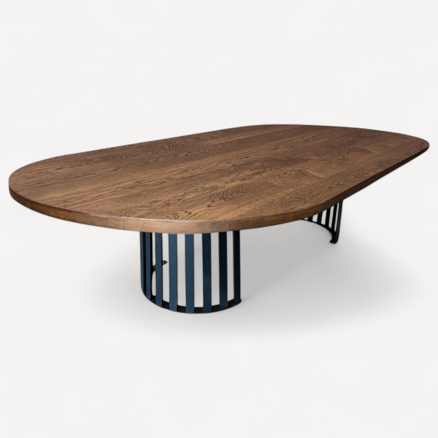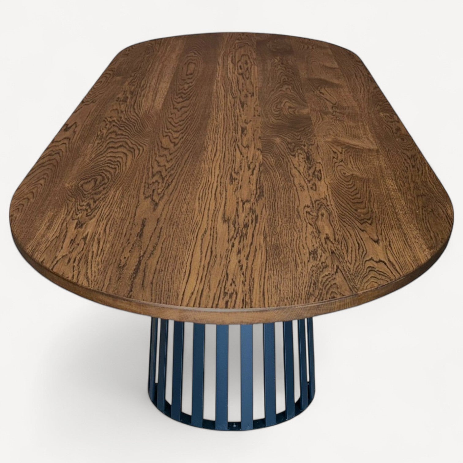 Ovalformet Plankebord i Massivt Egetræ – 4 cm Tykkelse med Metal Sokkelfod