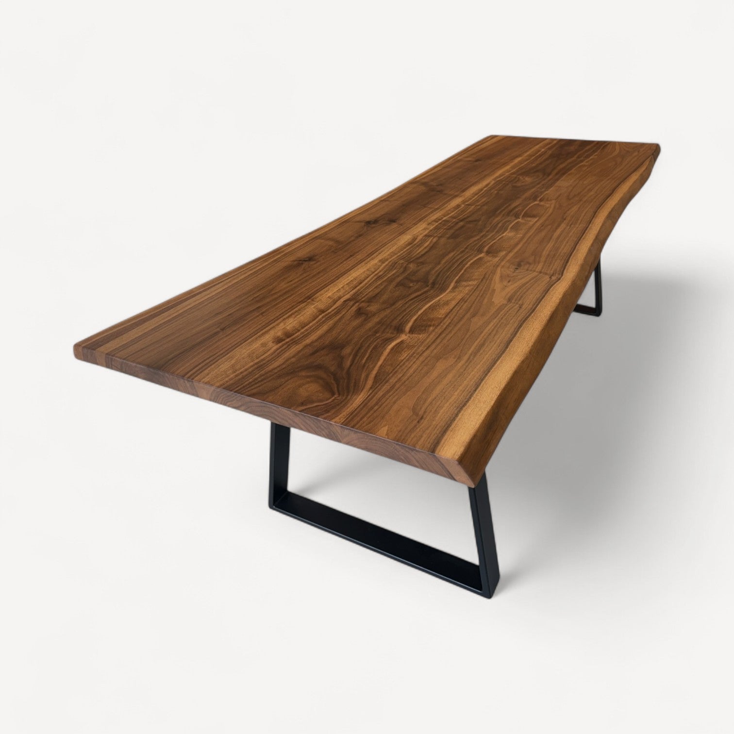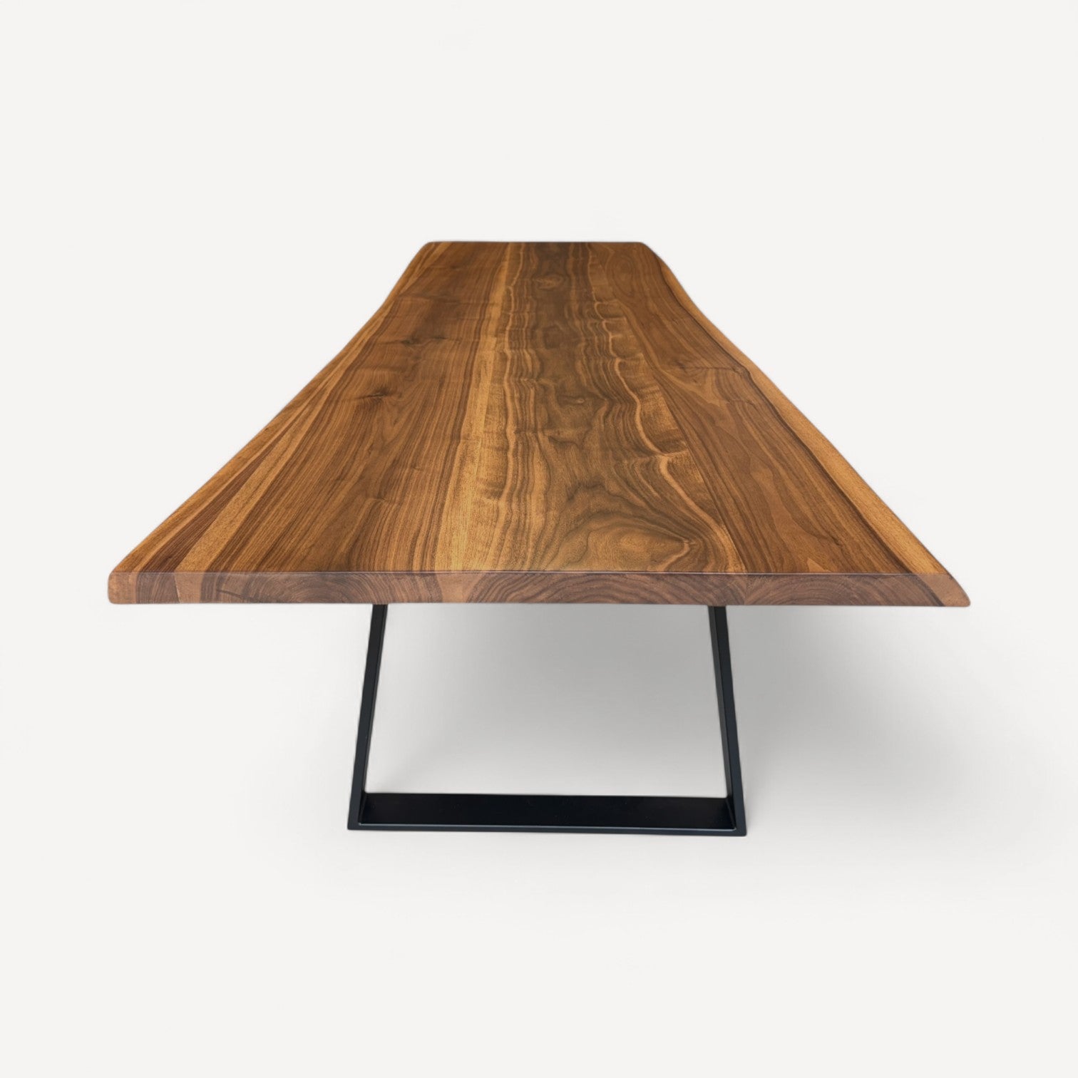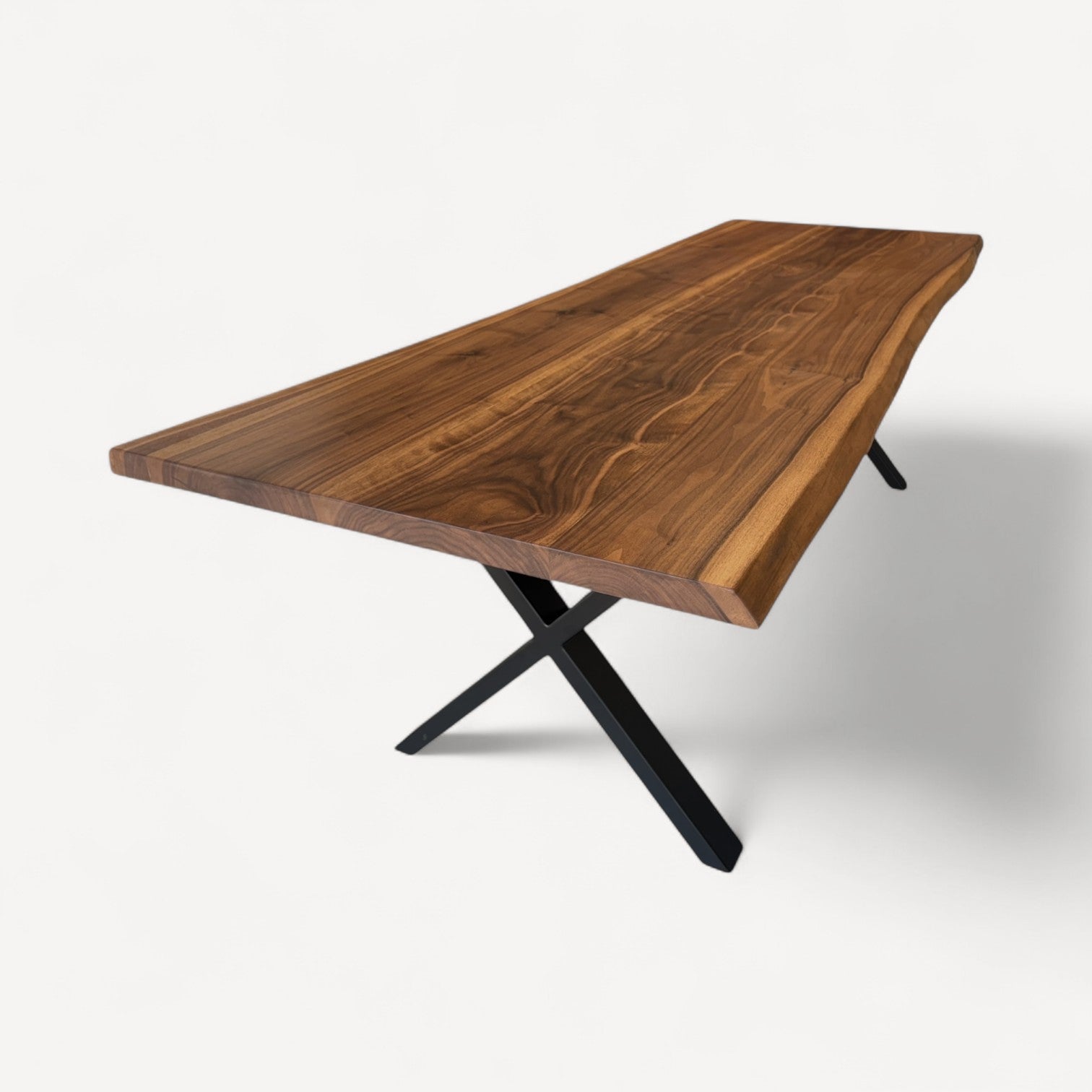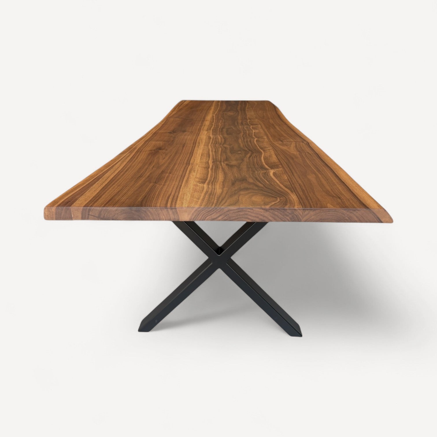 Understellet består af et stilrent stel i pulverlakeret metal, som giver bordet høj stabilitet og et moderne, industrielt udtryk. Det minimalistiske design danner en flot kontrast til den varme valnød og fremhæver træets naturlige skønhed.