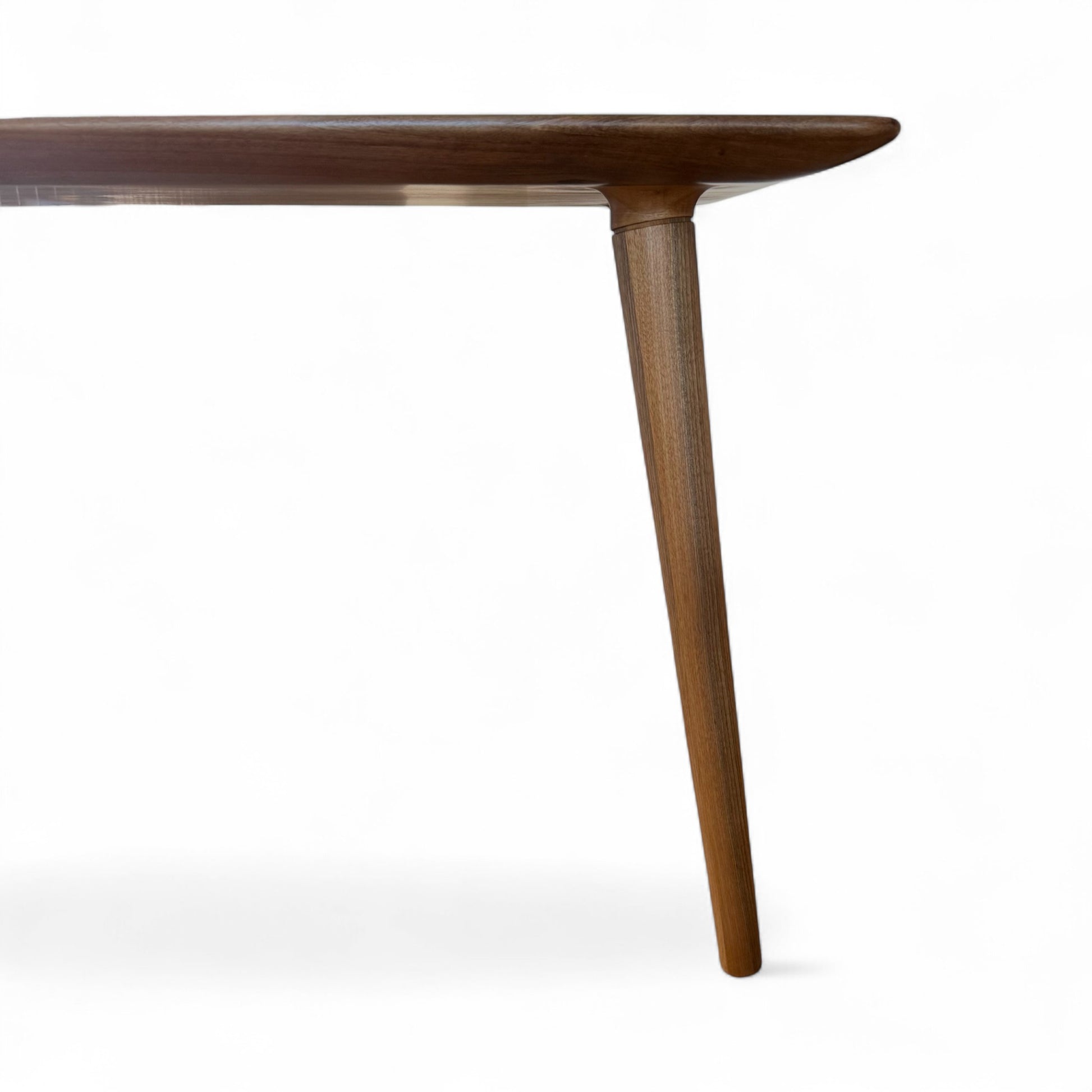 Bordet er monteret med massive bordben i valnød, som skrues direkte fast i pladen. De koniske ben skaber et let og elegant udtryk, samtidig med at konstruktionen giver maksimal stabilitet og styrke.