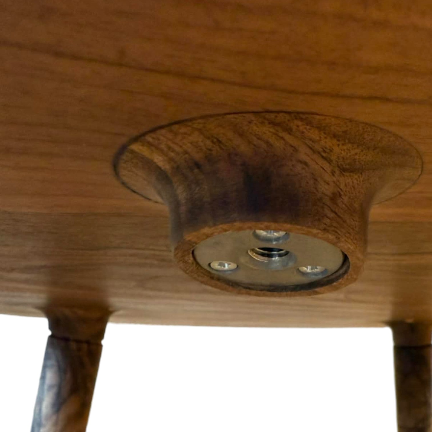 Begge træsorter udvælges med fokus på struktur, ro og naturligt spil i åretegningerne. Bordet konstrueres efter traditionelle snedkerprincipper, hvor stabilitet, balance og lang levetid er i centrum.